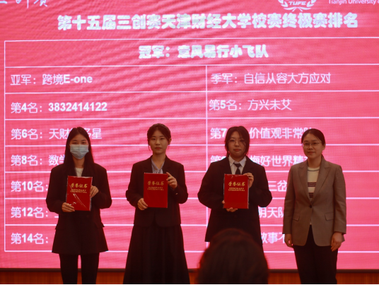 经过激烈比拼,《基于O2O模式的5G+意风易行新纪元》、《智联全球,E启未来—跨境E-one》、《螺钿凝彩韵——数字化赋能贝壳艺术传播的创新发展之路》、《爱宠云APP——构建人与宠物情感互联的次世代数字家园》、《智游未来—AI桌游的融合创新》、《傩影纪元-非遗傩戏的传统活化与数字创变之路》、《赤忱津韵·元境游踪》、《小小杏花——基于深度学习推荐和协同设计方法的互动式儿童性教育平台》八个参赛作品荣获校赛常规赛特等奖,此外还评选出了多个一等奖和二等奖项目。此次比赛的优秀团队将代表我校参加第十五届“三创赛”天津市选拔赛。
