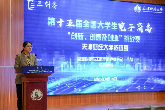 管理科学与工程学院党委书记单喆在致辞中表示学院高度重视创新创业教育,已连续承办了11届电子商务“三创赛”校赛,我校代表队获得了该项赛事的国家级及市级奖项近百项。该赛事不仅为天财学子搭建了激发兴趣、挖掘潜能的优质平台,更进一步推动了创新创业人才培养体系的完善,营造出浓厚的创新创业氛围。