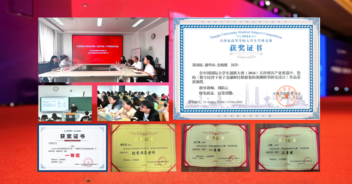 为了更好地贯彻落实《我校全面深化改革在更高水平上推进“新财经”建设实施纲要》精神,经济学院经济学系积极推进新一代信息技术与经济学的跨学科深度融合体系建设。截至目前已与北京中软国际教育(卓越研究院)、中汽数据(天津)有限公司、深圳希施玛数据科技有限公司等多家企业展开合作,形成了诸多成果。在与中软国际教育卓越研究院的合作中,双方联合申报获批教育部产学合作协同育人(经济学数智人才培养创新实践基地)项目;以赛促教,校企专家联合执导,学生荣获2024年中国国际大学生创新创业大赛(天津赛区产业赛道)三等奖、2023-2024年连续两年获得中软卓越杯一等奖等荣誉;邀请中软等企业专家进校举办专家行讲座活动,推动“企业导师进课堂”,将前沿产业实践融入教学体系。在与中汽数据(天津)有限公司的合作中,双方联合申请获批了市级研究生产教融合工作站,创新探索经济学高层次研究型人才培养产教融合新模式。