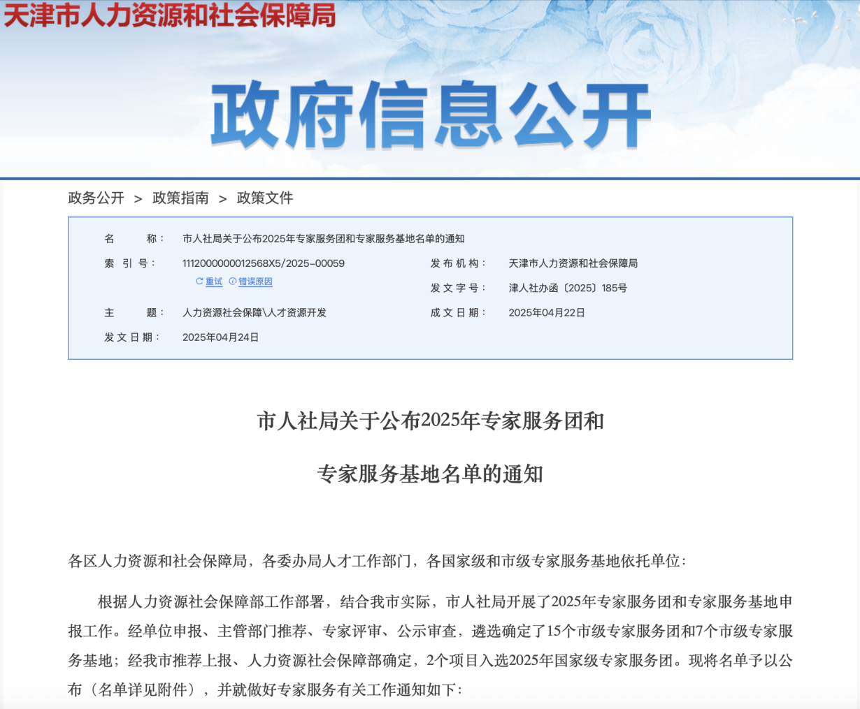 近日,天津市人力资源和社会保障局公布了2025年专家服务团和专家服务基地名单,我校统计学院“推进统计现代化改革专家服务团”入选2025年市级专家服务团。