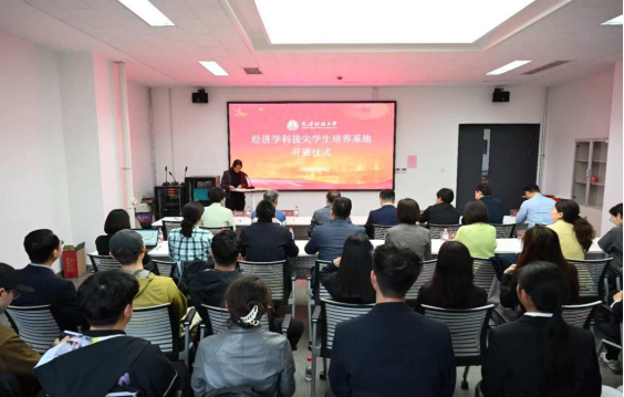 2025年5月9日,天津财经大学经济学科拔尖学生培养基地(以下简称“拔尖基地”)首届学生的开班仪式在N8-209隆重举行。校党委副书记、校长孟昊,我校相关职能部门和学院负责人,清华大学社科学院经济所所长戎珂教授及团队青年教师和博士,以及首届经济学科拔尖学生培养基地的全体学生齐聚一堂,共同见证这一重要时刻。开班仪式由教务处处长刘红梅主持。