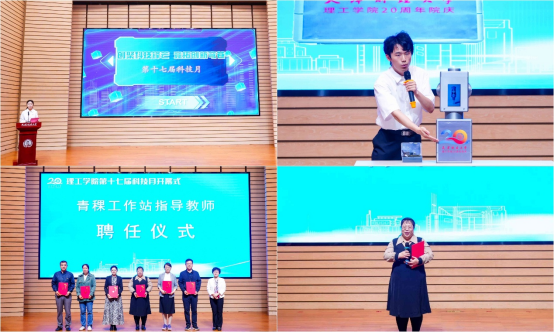 第十七届科技月开幕式由理工学院党委副书记郎维维主持。学生代表石纯语介绍了本届科技月中科普创新实践、创智团队竞技和科技先锋课堂等主题活动。计算机与信息工程系主任王朕指导的研究生刘雨鑫代表团队展示了自主研发的基于DeepSeek大模型研制的智能机器人科技作品,与现场观众进行了互动,并共同完成了科技月的倒计时启动环节,体现了学院“以赛促学、以研促教”的育人成果。值得关注的是,学院“青稞工作站”再度开启,六位指导教师在科技月开幕式上获颁聘书,软件工程与智能技术系主任严冬梅老师寄语理工学子努力钻研,同时也希望广大校友与师生携手共创学院美好未来。