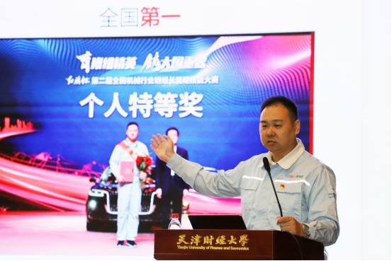 王伟以“弘扬劳模精神,争做时代先锋”为主题,以“理解、践行、追求、弘扬”为主线,结合自身“职场新人-全能班长-冠军选手-金牌教练”的奋斗历程,生动诠释了劳模精神、劳动精神、工匠精神的深刻内涵与时代价值。通过展示车间工作影像、获奖证书等珍贵资料,王伟分享了他在生产线中连续奋战、攻坚克难的故事,并强调:“卓越源于对细节的极致追求,成功离不开日复一日的坚持。”他鼓励青年学子以“择一事终一生”的执着、“干一行钻一行”的专注,在学习和实践中锤炼本领,争做新时代的奋斗者。