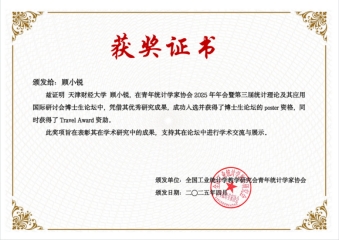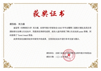 近日,全国工业统计学教学研究会青年统计学家协会2025年年会暨第三届统计理论及其应用国际研讨会在济南成功举办。我校统计学院多名博士生成功入选博士生论坛,并通过海报展示其最新的研究成果。