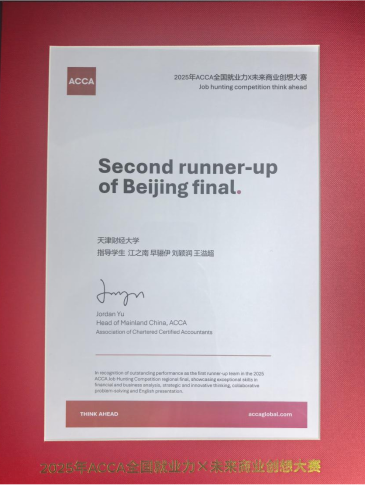 2025年5月23日,由ACCA(英国特许公认会计师公会)举办的,2025年全国就业力X未来商业创想大赛(简称JHC)北京赛区决赛圆满结束。我校国际工商学院ACCA方向班学生刘颖润、王溢超、早骊伊和江之南组成的代表队获得季军!我校获得最佳组织院校奖!