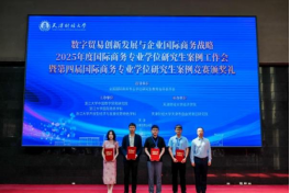 2025年5月24日,2025年度国际商务专业学位研究生案例工作会暨第四届国际商务专业学位研究生案例竞赛颁奖礼在我校成功举办。本次会议由全国国际商务专业学位研究生教育指导委员会指导,由浙江大学中国数字贸易研究院、浙江大学国际商务学科、浙江大学开放型经济与发展优势特色学科主办,由我校经济学院和我校天津市自由贸易区研究院承办。来自浙江大学、南开大学、中国人民大学、中央财经大学、对外经济贸易大学等全国30余所高校的100余位专家学者和师生代表参会。