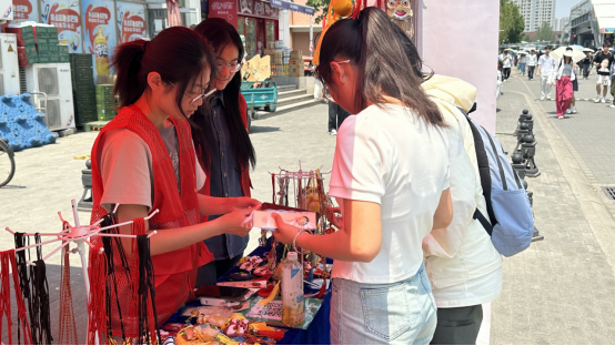 我校义卖活动于5月27日在大学生公寓暖心启幕,作为连续五年接力的校地协作项目,本届活动持续深化东西部文化交融与乡村振兴实践。展台上陈列着庆阳非遗香包、刺绣包等文创产品,一针一线无不凝结着津甘两地的深深情谊。