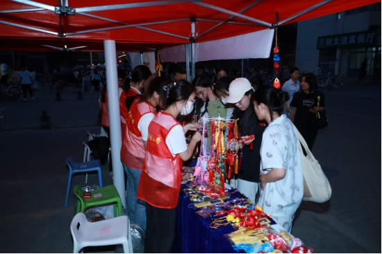 义卖活动持续两天,前来义卖展台选购的师生们络绎不绝。如意大团圆、绣花圆镜等新款香包让大家爱不释手。醒狮挎包、手工青蛙、挂件小老虎、吉祥虎头等精致可爱的小动物造型吸引了广大师生的目光。天财青年学子以饱满的热情,详细解说每个香囊的寓意与功能,娓娓道来每个产品所承载的美好祝愿与留守儿童母亲们融入其中的深厚爱意。他们号召同学们挑选心仪的产品,用实际行动传递温暖关爱,让传统节俗承载更多青春善意。