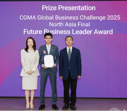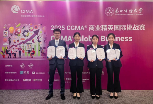 2025年6月6日-6月8日,由AICPA & CIMA国际注册专业会计师公会主办的CGMA 2025商业精英国际挑战赛(简称“GBC”)北亚极限赛在东北财经大学举行。我校国际工商学院学子再创辉煌,由2024级雷紫凝、王誉桦、赵佳祺、范少泽组成的“Dreamchaser”队,从来自中国、日本、蒙古及港澳台地区的9支顶尖高校队伍中脱颖而出,勇夺北亚极限赛亚军,并斩获“最佳AI应用奖(Best AI Application Award)”。范少泽同学更荣膺赛事“最佳商业潜质(Future Business Leader Award)”个人大奖,创造了我校参与该项国际赛事的历史最佳成绩。