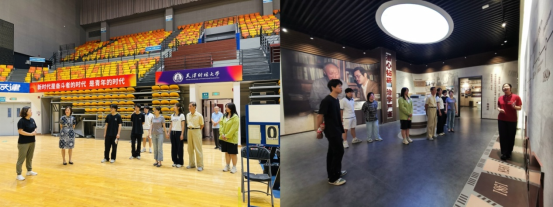 会前,团组来到综合体育馆,参观我校体育教学成果展和完善的体育设施,现场活跃的课堂训练氛围和天财学子昂扬的精神风貌,给团组留下了深刻印象。随后在学校思贤堂讲解员的生动讲述中,团组聆听了学术大师们躬耕教坛、献身学术的动人事迹,深切了解到学校深厚的学术底蕴和文脉传承,纷纷为我校“不息为体、尚勤致精、日新为道、经世济民”的天财精神点赞。