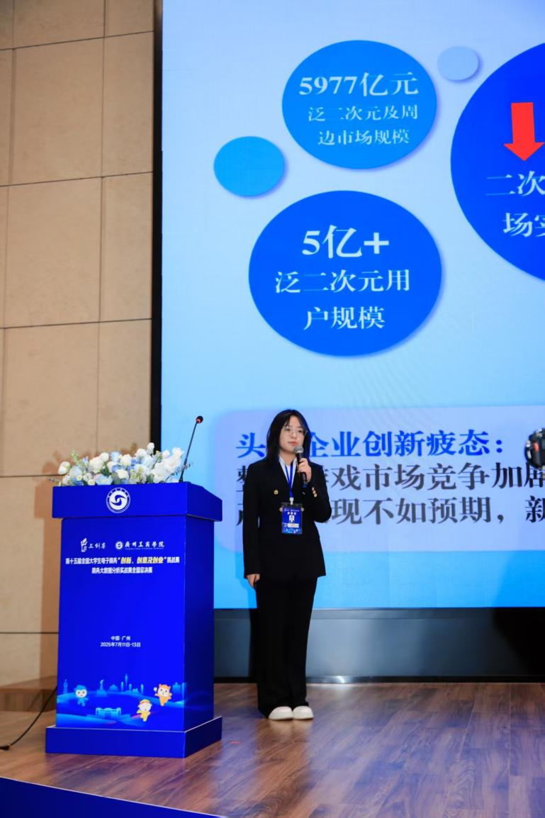 我校共有两支团队闯入商务大数据分析实战赛全国总决赛,经过两天的激烈角逐,创创泥豆角(队员:信息2301庞硕、管科2301邓诗晗、信息2301杨珂霏,指导教师:杨光煜、谢昀雅,作品名:数破次元——多维数据分析米哈游的破圈之路)名列全国第六名并荣获全国特等奖;五维星光(队员:计算2301寇殿彬、数学2301王月影、精算2301周语涵、工实2301曾凡俊、应用2402贺子晗,指导教师:刘畅、夏晨雪,作品名:天生“悟”才,中国文化破圈密码 ——《黑神话:悟空》消费者行为数据分析报告)荣获全国一等奖,杨光煜、谢昀雅获得最佳指导教师荣誉称号,刘畅、夏晨雪获得优秀指导教师荣誉称号。