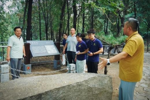 在天津市高校“双带头人”教师党支部书记、“强国行”专项行动团队负责人、蓟州区官庄镇盘富庄村第一书记、人文学院新闻与文化传播系主任李然老师和人文学院英语系与日语系学生党支部书记李卓芸老师的带领下,实践团与蓟州区三个乡村党支部与村委干部进行支部座谈,校地党组织积极推动优势互补,为当地文旅路线规划建言献策。实践团首站还参观了联合村红色教育基地,在义务讲解员龙成文的深情讲述下重温“莲花峰七勇士”等军民抗战事迹。随后,实践团专程探访了抗战石刻标语遗址,深刻体悟到革命胜利的艰辛与守护和平的责任,此行所获鲜活素材与深刻感悟将助力深挖蓟州革命文化,以青春智慧赋能乡村文化振兴。