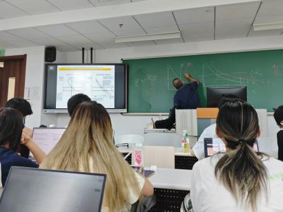 本次暑校期间,天津财经大学的8名学生均参与了《国际金融:世界经济与汇率》课程的学习,该课程由伦敦国王学院的Georgios Chortareas教授授课,课堂上,同学们专注思考、紧跟教授思路积极互动;课后,主动与教授进行探讨,力求精准掌握相关内容。
