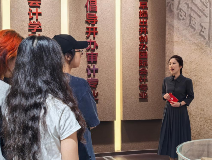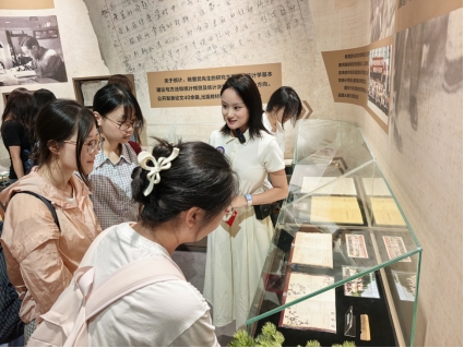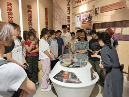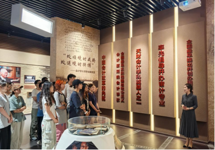 郭睿老师则带领同学们穿行思贤堂专题展,详细讲解了“一本统计学教材”“一面全息投影”“一份入党申请书”的故事,结合不同场景和文物讲述了杨曾武、李宝震两位大师在不同历史时期服务国家重大需求、培养高层次财经人才的平凡而伟大的一生。