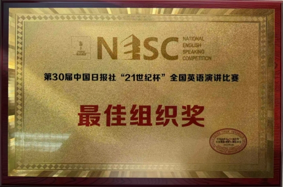 近日,中国日报社第30 届 “21 世纪杯” 全国英语演讲比赛天津赛区赛事落幕,天津财经大学凭借扎实的赛事组织能力与突出的育人成效,斩获 “最佳组织奖”。这一荣誉不仅是赛事主办方对学校学科竞赛工作的高度认可,更是学校践行 “立德树人” 根本任务、以赛育人成效的集中彰显,为学校推进一流学科建设、培养高素质国际化人才注入关键动能。