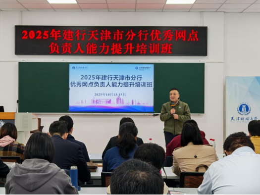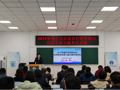 为全面提升建行优秀网点负责人的理论素养、创新思维和综合素质,赋能金融一线领军人才,10月13日,我校与建设银行天津市分行联合举办的“2025年建行天津市分行优秀网点负责人能力提升培训班”在天津财经大学马场道校区开班。培训班为期3天,共有来自基层网点学员40名。培训前举行了简短的开班仪式,建行天津市分行渠道运营与管理部副总经理张纳、建行研修中心华北研修院副总经理单悦、天津财经大学继续教育学院院长郑利出席并讲话。