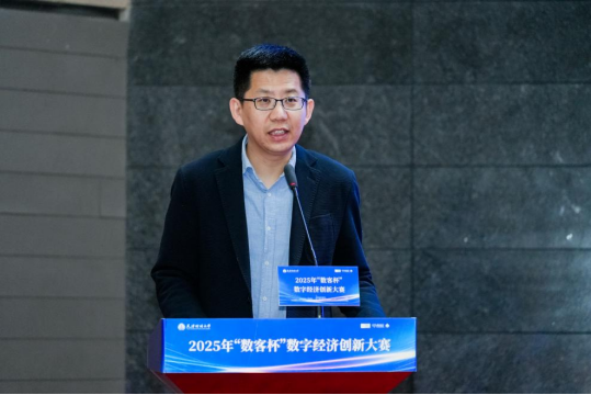 许晶副处长代表天津市教委向大赛的顺利举办表示热烈祝贺,他指出,大赛始终坚持“企业出题,真题真做”的特色,为近千名学子搭建了创新舞台,为产业输送了兼具理论与实践能力的青年人才。本届大赛设置的三大赛道精准诠释了学科竞赛的高阶要求,是教育服务产业、人才支撑发展的生动实践,有力助推了数智商学顶尖学科的建设。