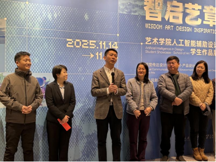 近日,艺术学院主办的“智启艺章”——人工智能辅助设计学生作品展在我校艺术展览馆隆重开幕。本次展览聚焦人工智能与艺术设计的深度融合,集中展示《人工智能时代下OBE理念驱动艺术设计专业建设研究与实践》教学改革和《人工智能辅助设计与创新》课程的教学成果,呈现艺术学子在科技浪潮中的创新实践与思考。