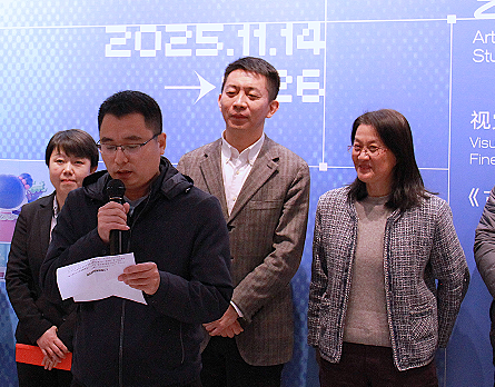 教师代表郭文雅回顾了《人工智能辅助设计与创新》课程建设历程,介绍了课程建设取得的丰硕成果,他表示人工智能正从“工具”转变为“创意伙伴”,教学团队将继续探索技术、设计与艺术的融合路径。