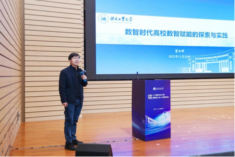 河北工业大学人工智能与数据科学学院教授董永峰立足学校“工学并举”特色,分享了“数字时代高校数智赋能的探索与实践”,介绍了学校构建“数据为王”的智慧校园架构。