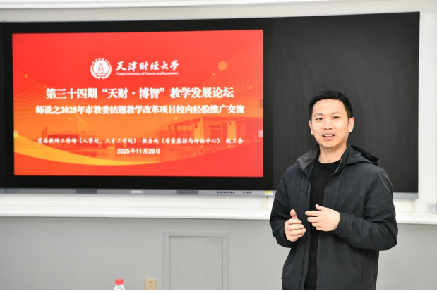 近日,我校成功举办第三十四期“天财·博智”教学发展论坛。本期论坛以“2025年市教委结题教学改革项目校内经验推广交流”为主题,特邀天津市高校本科教学质量与教学改革研究计划项目负责人、经济学院院长齐俊妍教授,以及教务处副处长于学伟担任主讲嘉宾。党委教师工作部(人事处、人才工作处)、校工会、教务处(质量监控与评估中心)相关负责人及工作人员,以及中青年教师代表参加了论坛。