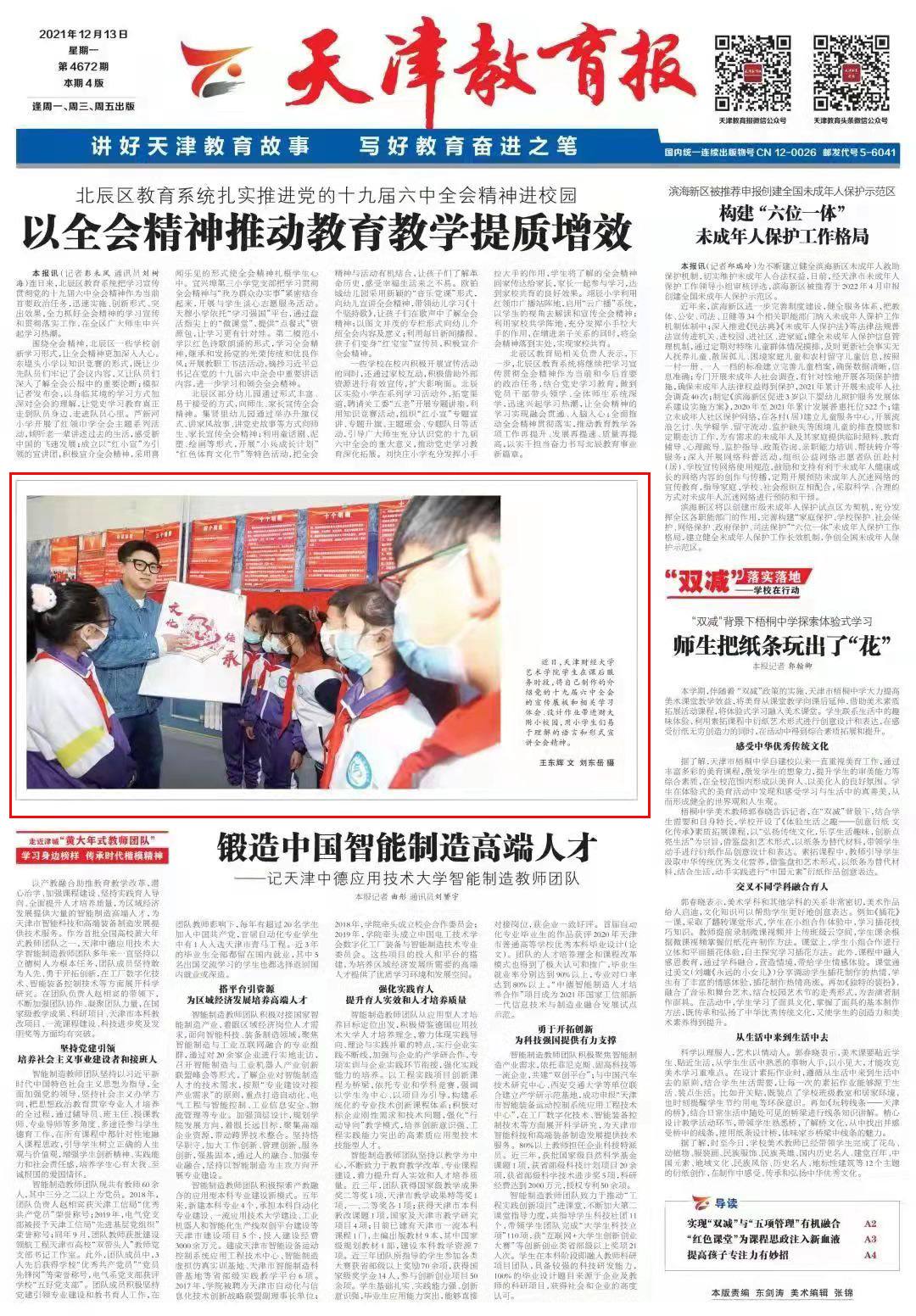 《天津日报》《天津教育报》报道天财学子宣讲六中全会精神