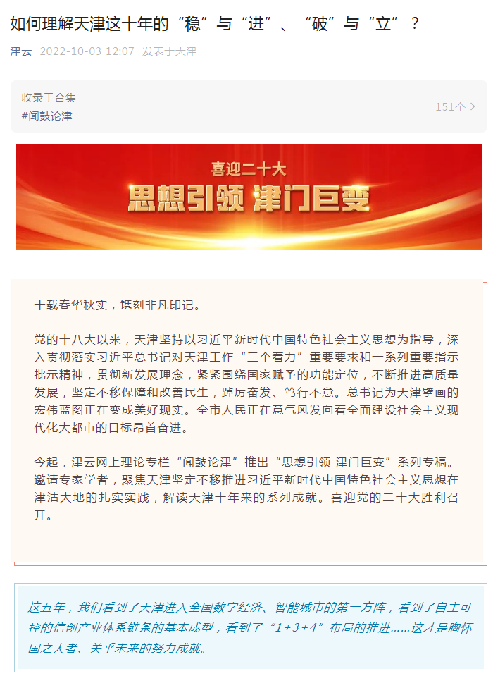 津云《闻鼓论津》专栏刊发马克思主义学院院长丛屹文章:如何理解天津这十年的“稳”与“进”、“破”与“立”?