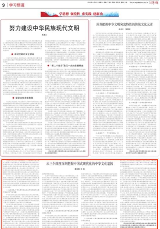 今年6月2日,习近平总书记在文化传承发展座谈会上强调:“在新的起点上继续推动文化繁荣、建设文化强国、建设中华民族现代文明,是我们在新时代新的文化使命”。全面推进中国式现代化,必须深刻把握中华优秀传统文化与中国式现代化的内在联系,拓展创新空间,担当使命、奋发有为,共同努力创造属于新时代的新文化,铸牢中国式现代化文化根基。