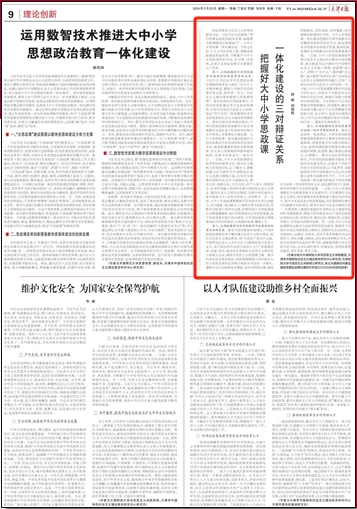 辩证思维是马克思主义哲学的根本方法。习近平总书记强调,“我们的事业越是向纵深发展,就越要不断增强辩证思维能力”。大中小学思政课一体化建设是一个持之以恒、久久为功的系统工程,要推动思政课高质量发展,不断提升大中小学思政课的时代性、针对性、实效性,必须立足辩证思维方式把握好以下关系。