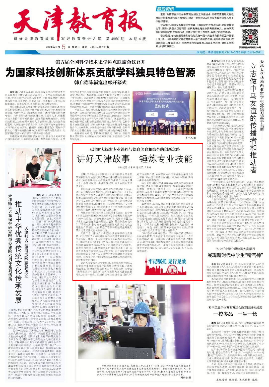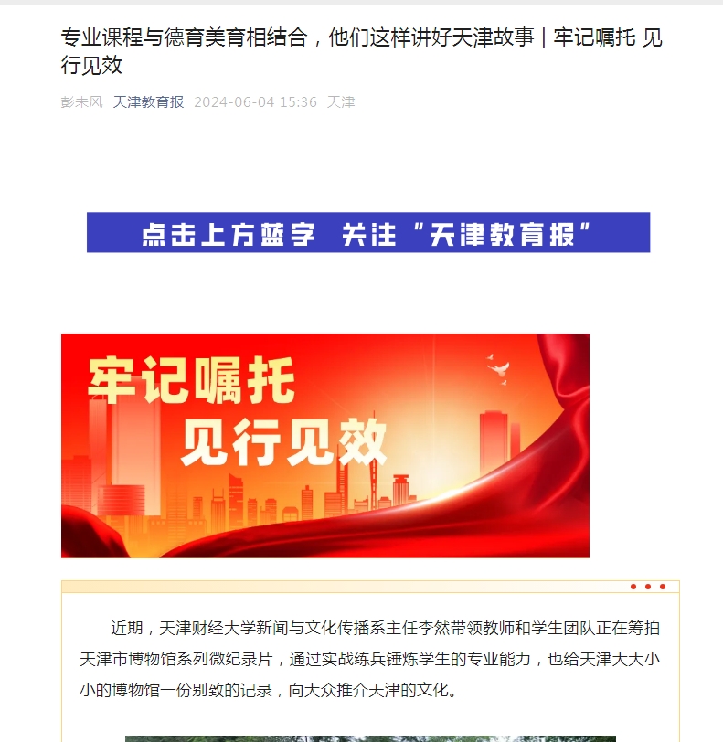 《天津教育报》报道我校专业课程与德育美育相结合,讲好天津故事