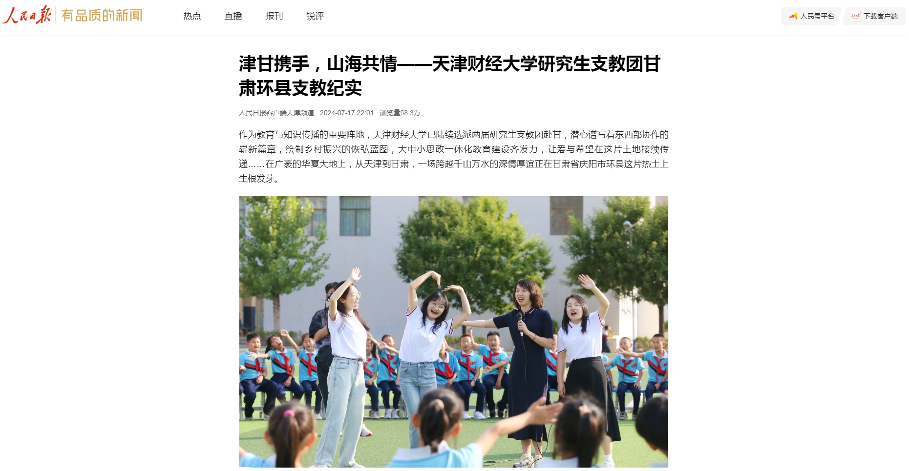 《人民日报》客户端刊发我校研究生支教团甘肃环县支教纪实