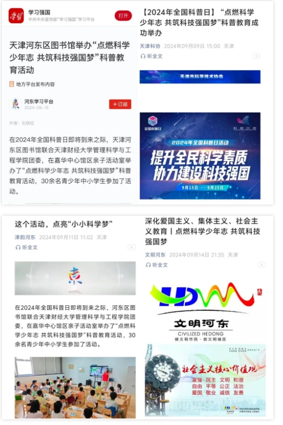 此次活动被学习强国、天津科协、津韵河东等多家官方媒体报道。