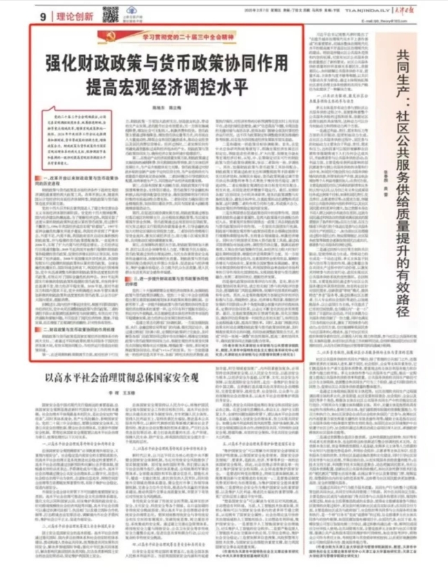 党的二十大强调要健全宏观经济治理体系,加强财政政策与货币政策协调配合。党的二十届三中全会也明确提出要完善国家战略规划体系和政策统筹协调机制。在新形势下,进一步提升财政政策与货币政策的协同性是宏观经济治理体系的重要一环,这不仅有利于提振市场信心和应对内外部挑战,而且能够促进实体经济和资本市场的平稳健康发展,助力经济社会发展目标的实现。