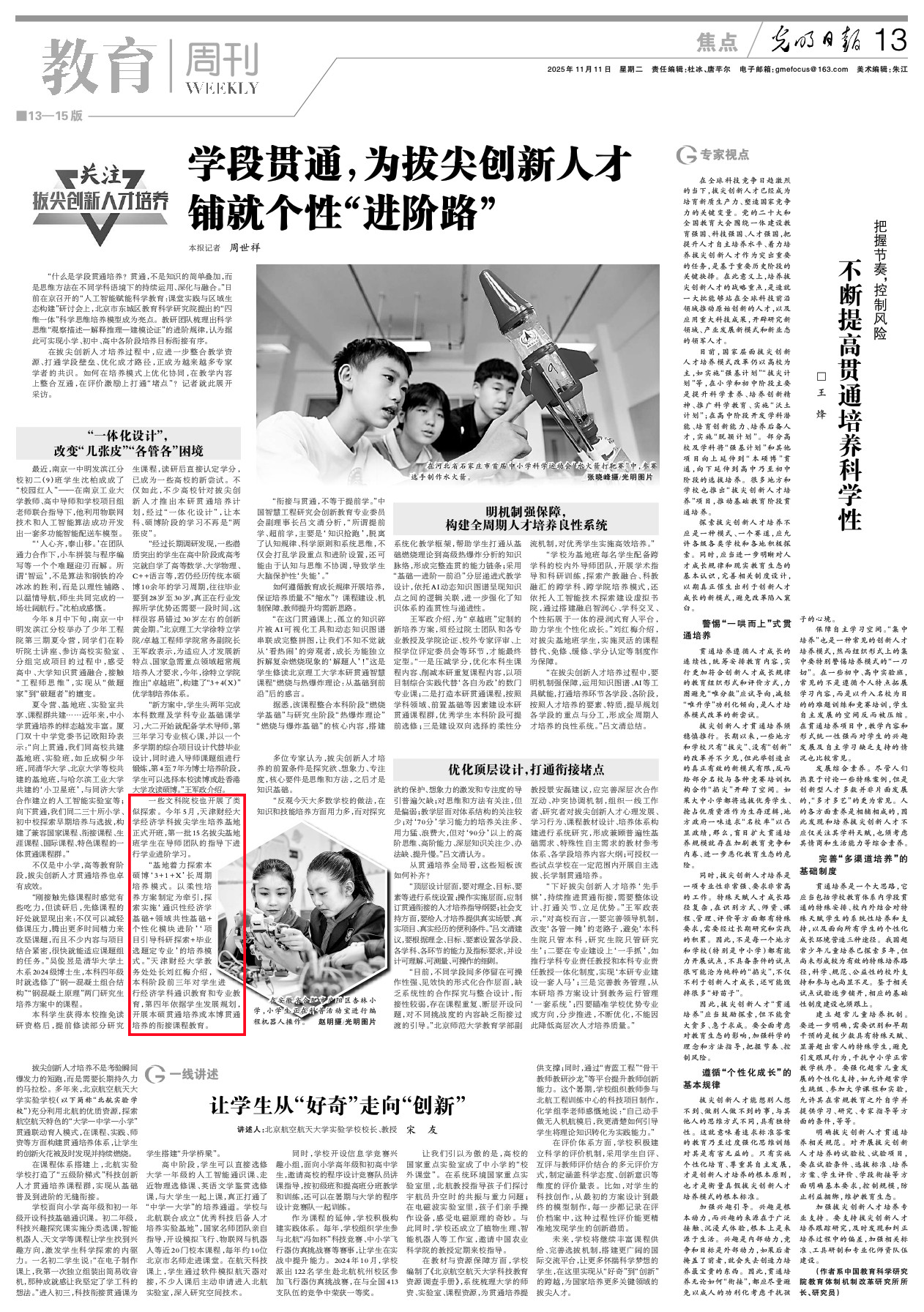 不仅是中小学,高等教育阶段,拔尖创新人才贯通培养也卓有成效。