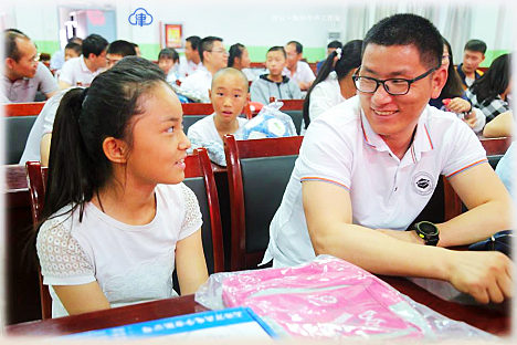 夏良杰(右)援疆期间参加助学活动