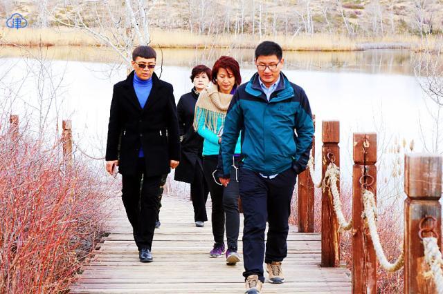 夏良杰(前排左一)援疆期间陪同相关专家及央视调研