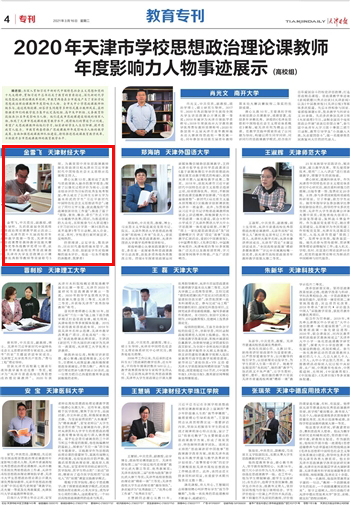 《天津日报》刊登2020年天津市学校思想政治理论课教师年度影响力人物我校金雪飞老师事迹
