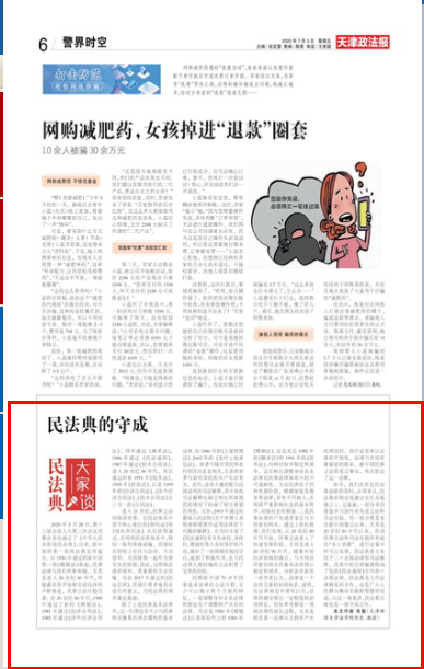 我校法学院院长张勤在《天津政法报》发表系列文章,多角度解读《民法典》