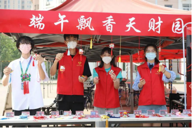 在端午之际,校党委书记张亚、副书记马岩与学工部教师代表们将五彩香囊赠与一直以来服务于校园核酸检测的学生志愿服务队,同时激励大家永葆青春活力,发扬天财精神,积极投身于社会服务与实践,传递爱心与希望,为社会进步贡献自己的一份力量。