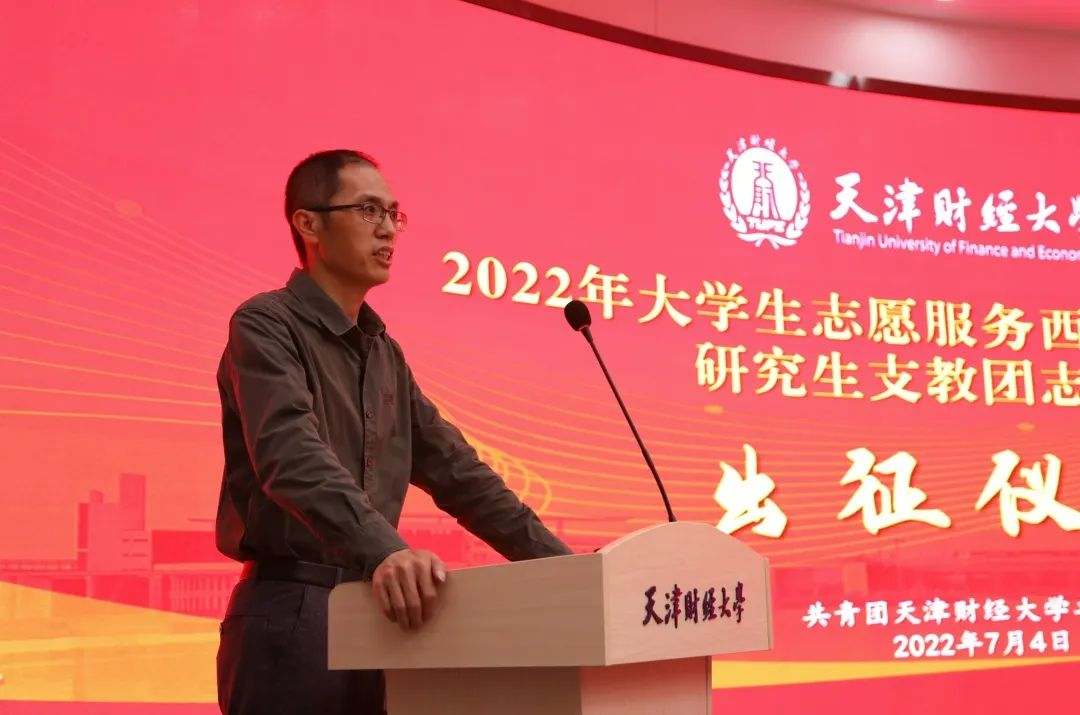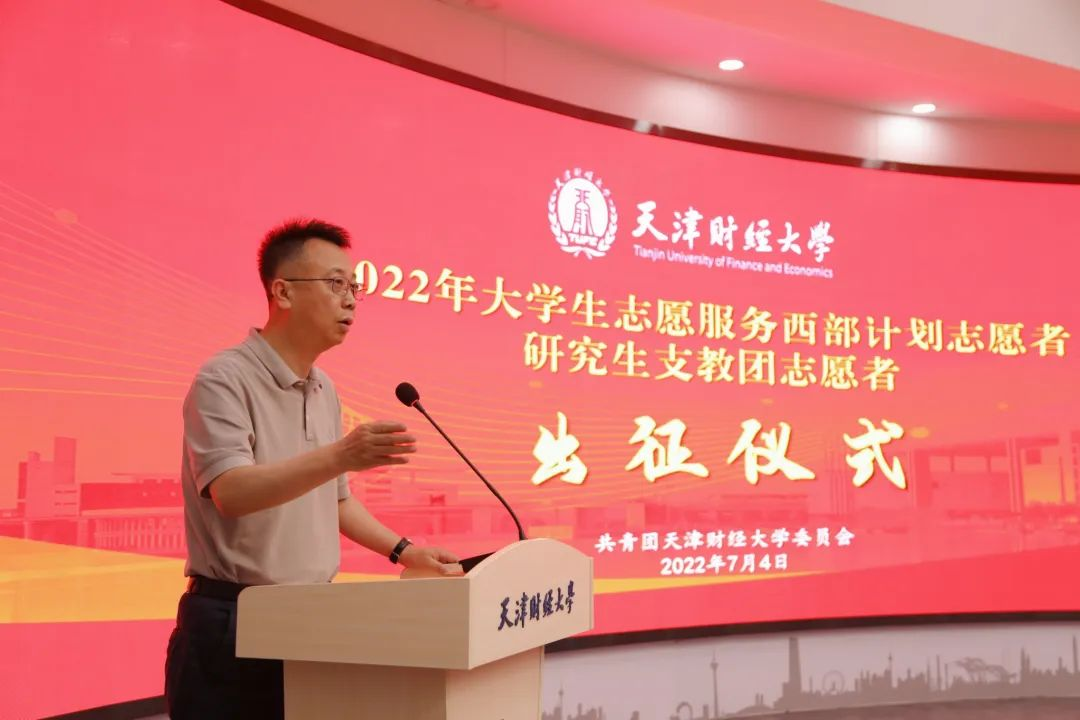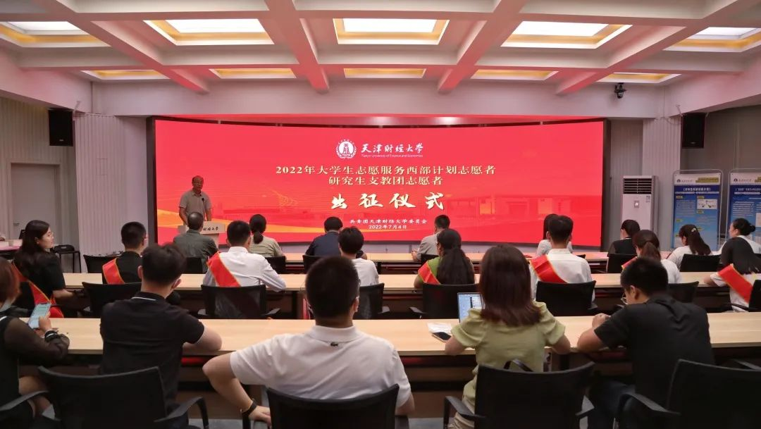 7月4日,我校2022年大学生服务西部计划志愿者、研究生支教团志愿者出征仪式于天津财经大学公寓综合楼路演厅举行。校党委副书记马岩、党委学生工作部部长杨磊、各相关学院副书记、辅导员、校团委全体成员出席此次出征仪式。仪式由校团委书记梁海龙主持。