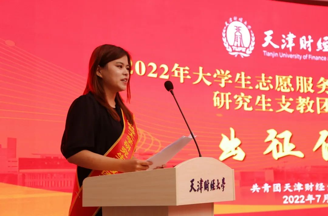 在即将到来的支教生活,他们将以立德树人为根本,把教育教学任务放在首位;严于律己,牢记并遵守项目办和学校的各项规章制度;团结互助,共同面对生活和工作上的困难,维护“天财研支团”这闪亮的名片;他们定会用最饱满的状态迎接挑战、砥砺奋进,走向基层大课堂,将理论应用于实践,努力成为有理想、敢担当、能吃苦、肯奋斗的好青年,尽己所能地为服务地贡献绵薄之力!