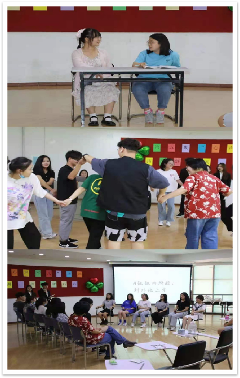 “畅聊天地”环节由学生们主动分享了对舒适圈的理解,并通过视频播放给出了舒适圈的精确定义;“情景剧场”环节则围绕上述的三个问题上演了两位主人公分别选择是与否之后不同的人生走向,让学生们对是否拓宽舒适圈有了更深的思考;“游戏人生”环节也紧紧围绕我们的主题词开展,让学生们全身心沉浸在“拓宽舒适圈”的氛围里;最后,“心理科普”环节系统地介绍了舒适圈的相关概念以及拓宽舒适圈的方法,为本次活动画上了圆满的句号。