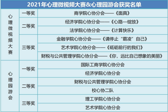 近日,由天津财经大学党委学生工作部主办,学工部心理健康教育中心、大学生心理健康与发展协会承办的第十八届大学生心理文化节圆满落幕。