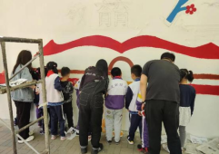 创新党史学习的方式方法,引导学子传播红色文化,走进财大附小开展校园墙绘活动,走进微山路中学开展手绘校园活动。财大艺术学院学生党员、团员与财大附小的小学生代表、与微山路中学的中学生代表一起大手拉小手,共同绘制“四史教育”“社会主义核心价值观”等主题墙绘和校园彩绘,表达拳拳爱国心、浓浓爱党情。在创作红色绘画的过程中,大学生们充分查阅材料,极大丰富了自身党史知识。在与小学生的交流过程中,又把所领悟的党史精神、红色文化传递给更年轻一代。《今晚报》对附小墙绘活动进行了报道。