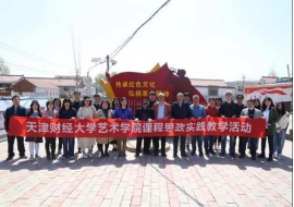 将党史学习融入到课堂教学和专业学习中,七一倒计时100天时,启动“学百年党史·践初心使命”系列活动。组织师生前往财大对口帮扶的蓟州区乔安子村和沽东村,开展主题课程思政实践教学活动,助力脱贫的同时,积极开展文化扶贫和创作采风。校内同步开展同主题艺绘百年师生笔会活动,围绕红船精神、井冈山精神、社会主义建设伟大成就等主题,现场创作开展教研活动。