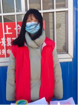 每当在志愿活动中,站在寒风飒飒的大街上,看见人们都主动佩戴口罩,她内心就非常开心。虽然有时候会遇见不配合的居民,但是只要她耐心地劝导大家,居民们还是很愿意配合。此次防疫志愿服务经历既是锻炼自身能力的机会,又是一个很好学习的平台,不仅为自己的家乡防疫做出了贡献,也让她明白了新时代新青年肩上的责任。