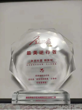 除此之外,郑梓昕同学与其他青年志愿者积极配合社区筹集消毒防护物资,累计购买一次性口罩、消毒液、体温检测仪等几千余件;学习培训社区全体居民规范防控知识并教会居民正确使用消毒液的技巧方法等,累计几千多人次;志愿者和其他工作人员不断排查居民近期身体情况,是否有直接或间接接触病原体。更为关键的每日检查出入小区的驾驶人员体温和体内酒精含量,确保驾驶人员身体状况良好才允许放行,积极配合社区防控大队的工作,严防严控疫情的传播,保证居民的出行安全,从根源上做好了防控工作。
