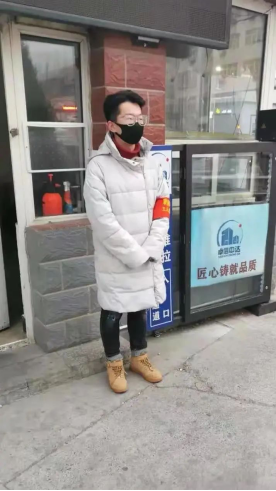 在寒假之后我国疫情又有抬头的迹象,河北和北京均出现了疫情传播的情况,与两地相接的天津也进入了防控的状态。在了解到所在街道在招募疫情防控志愿者的消息后,王子豪同学报名了本社区的志愿者。在值岗期间主要负责对出入社区的人员进行测温、检查健康码、定时消毒和对外来人员进行信息登记的工作。值岗和平时短暂的外出不同在于长时间站在户外冷风将寒冷的感觉变得更加的突出,因此棉手套、线帽和棉裤成为了他的工作标配。