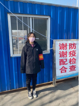 自返乡以来,赵晨晨同学积极地配合社区完成各项工作,同时主动争取到作社区防疫志愿者的机会,并努力投身其中,体验防疫工作者的辛苦不易。初入工作时,在交接工作的社区干部等的指导下,她熟练掌握了具体工作流程,同时也提升了对外交流的能力,能够充分有效地完成对进入社区的外来人员登记、体温测定和记录的任务。通过此次工作,她认真地履行了公民防疫的义务,更是用积极的行动了解我国疫情防控的基层工作。同时,她也表示为国士无双、全民防疫的中国精神而感到深深的自豪。