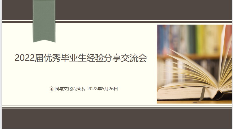 5月26日,新闻与文化传播系邀请2022届优秀毕业生分享经验,领航学涯。来自汉语言文学和广播电视新闻学两个专业的六位毕业生为大一新生和返校学生分享了他们的经历、体会,并给同学们提出建议。